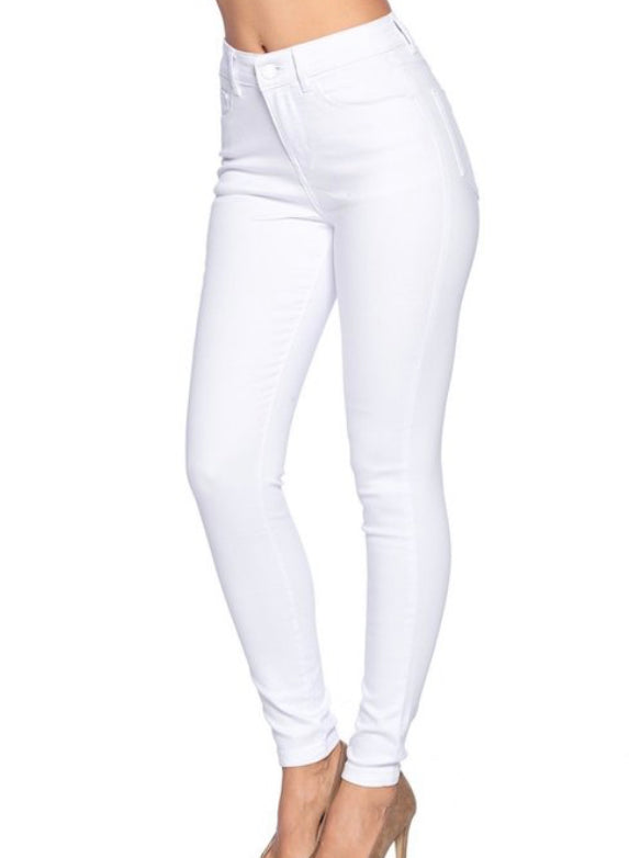 Description: SOLID HIGH WAIST WHITE DENIM JEANS - WOMENS YOUNG CONTEMPORARY FIT PREMIUM JEANS