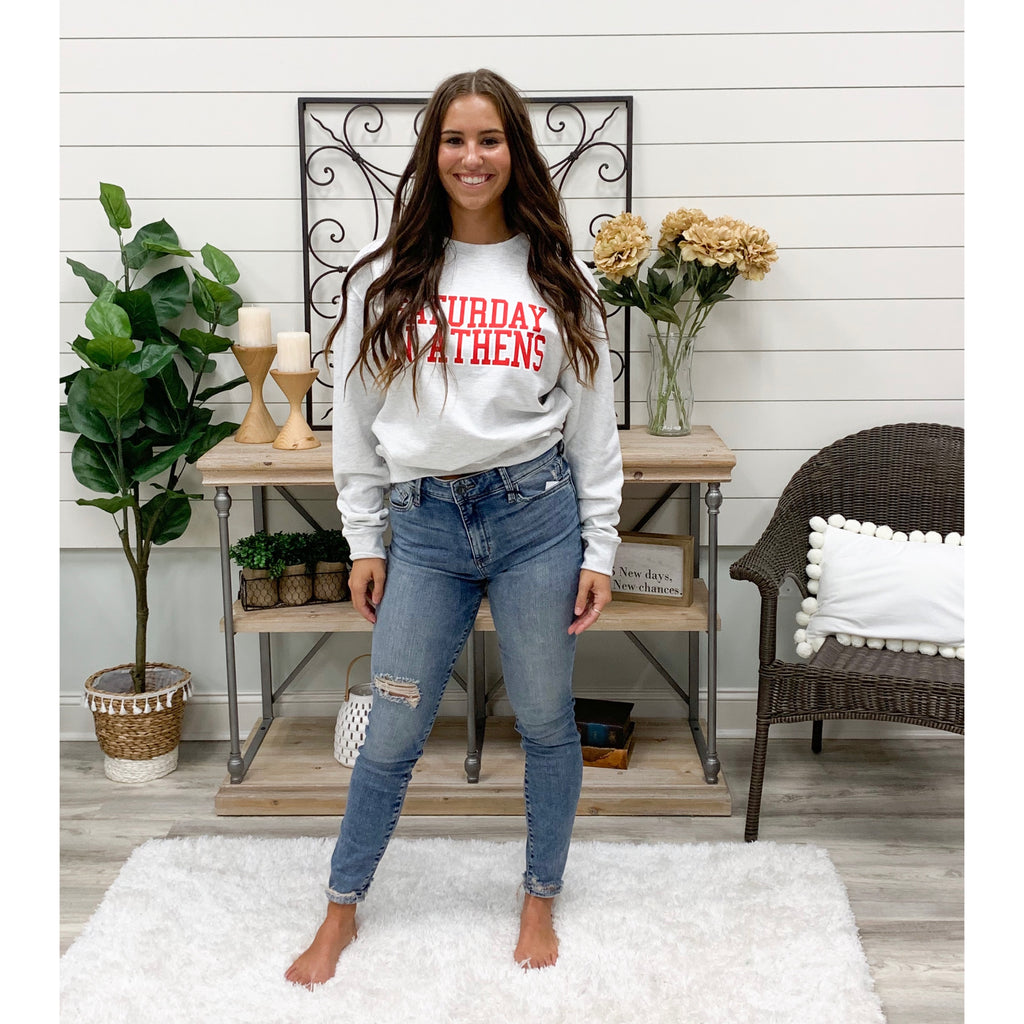 GOOOO DAWGS! Can you beat a Saturday in Athens!? Our Saturday in tees are back in a new design. Grab the one for your team now! Get Gameday ready by styling this tee with high waisted denim and platforms! Catch ya later, we’re headed to Sanford Stadium!