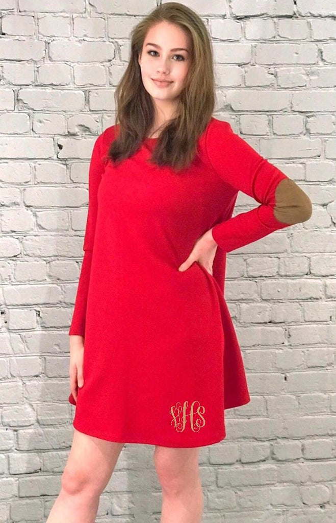 Adorable elbow patch dress perfect for an evening out or going to work! Nice thicker material that does not show through.