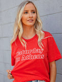 GOOOO DAWGS! Can you beat a Saturday in Athens!? Our Saturday in tees are back in a new design. Grab the one for your team now! Get Gameday ready by styling this tee with high waisted denim and platforms! Catch ya later, we’re headed to Sanford Stadium!