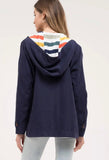 - Long sleeve jacket - Zipper and button closure - Contrast stripe lining