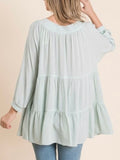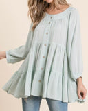 Description: SOLID RAYON BUTTON DOWN LONG SLEEVE TUNIC TOP