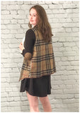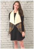 Description: -Plaid fur lined vest with pockets and wide notched collar. Open front. Non-sheer. Lightweight.