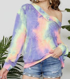 MULTI COLORED TIE-DYE FRENCH TERRY V-NECK LONG SLEEVE TOP