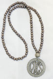 Dress up your wardrobe with this cute personalized necklace. Necklace length is a circumference measurement. Pendant is gray wood with gray beads. Pendant shape and font can be customized.