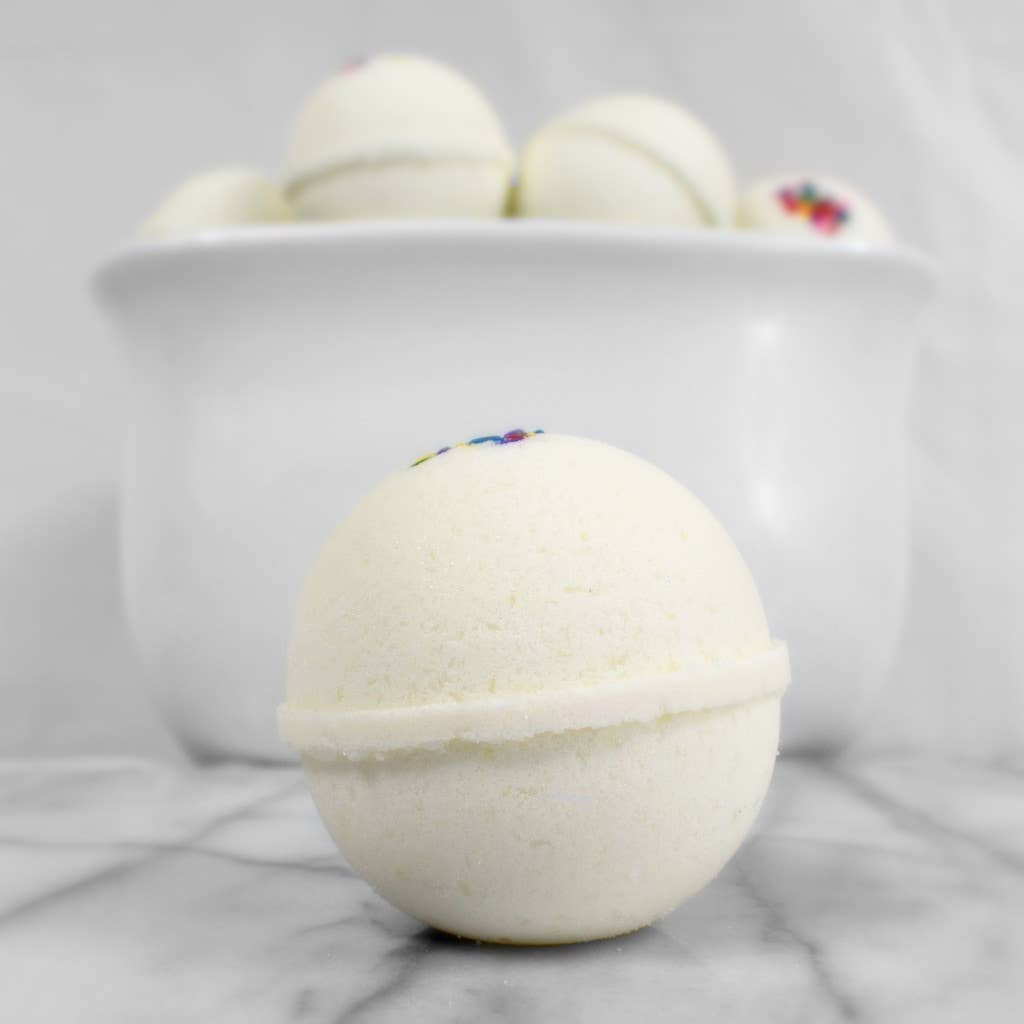 It's time to step in the tub and relax. This bath bomb is sure to get the job done. A sweet confection with white cake and hints of creamy, sugary vanilla frosting. Our 6 oz bath bombs are roughly the size of a tennis ball. Ingredients: Sodium bicarbonate (baking soda), citric acid, magnesium sulfate (epsom salt), corn starch, coconut oil, shea butter, fragrance, water, and mica. Size - 6oz.