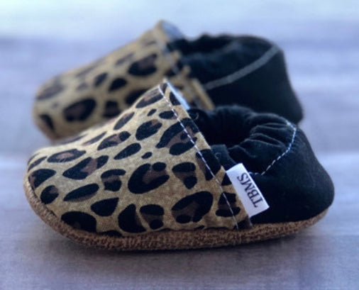 These are one-of-a-kind, handmade moccasins that can be paired with any outfit. Each pair is made with durable cloth and layers of felt and lined with luscious fleece for extra comfort. A heel guard reinforces the quality of the moccasins, while the bottom allows for the baby's to grip the floor as they learn to walk.