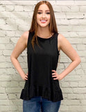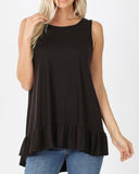 Description: BRUSHED DTY SLEEVELESS RUFFLE HI-LOW HEM TOP