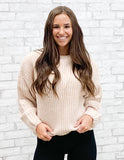 Casual fit slightly mock neck solid chunky drop should sweater knit