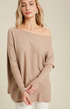 Super-soft cozy tunic featuring an boat neckline, long batwing sleeves, flowy oversized fit.