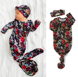 Black & Red Floral knotted button newborn gown and headband (Gigi & Max)
