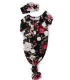 Emma Floral knotted button newborn gown and headband (Gigi & Max)